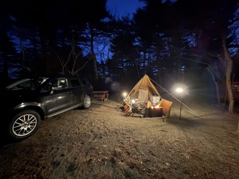 仕事終了後、キャンプ場へ集まり それぞれ自分のテントを張り