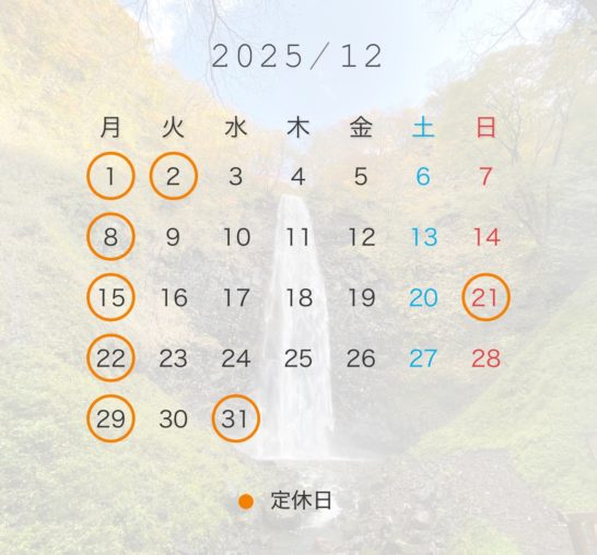 12月、1月の店休日は以下の通りです♪